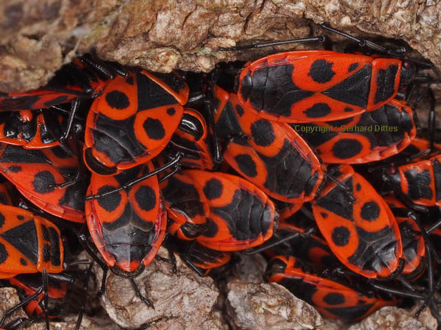 An ihrer rot-schwarzen Warntracht ist dieses etwa einen Zentimeter große Insekt leicht zu erkennen. Ebenso auffällig ist ihr massenhaftes Auftreten besonders im Fußbereich von Linden. Sie saugen an abgefallenen Lindenfrüchten und toten Insekten. Für den Menschen sind sie völlig ungefährlich. Aus den Eiern, die unter altem Laub abgelegt werden, schlüpfen Larven. Erst nach mehreren Häutungen sind sie erwachsen. In der Brettener Innenstadt kann man diese harmlosen Insekten oft an milden Wintertagen antreffen.